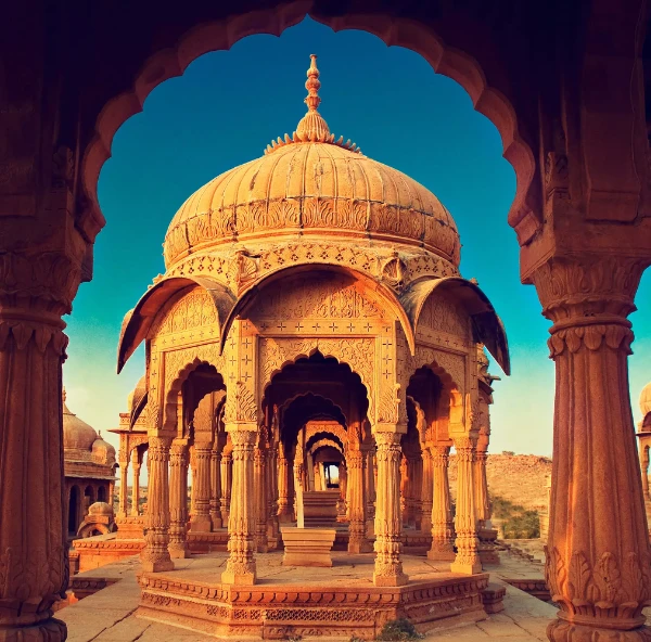 Morning visit to the stunning Patwon Ki Haveli and Salim Singh Ki Haveli — extraordinary merchant mansions carved entirely in golden sandstone with astonishing detail. Afternoon drive to the legendary Sam Sand Dunes — the largest and most spectacular dunes in the Thar Desert. Enjoy a camel ride into the dunes at sunset, followed by a magical desert camp evening with folk music, dance, bonfire, and a night sky full of stars. Optional overnight desert camp stay.
